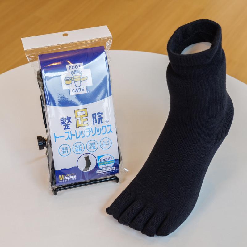 特許整足テーピング施術の半分の代用効果があるソックスになります。 5本指ソックスとして1枚で履くことが可能です。